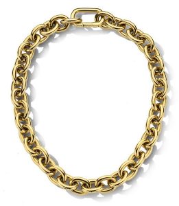 Victoria Bijoux ou le rayonnement avec le collier Yiva, ce bijou de caractère en acier doré (79 euros) qui s’impose avec sa maille forçat ronde et son fermoir XL. Son placage ionique or capture la lumière à chaque mouvement pour offrir une pièce à la fois robuste et solaire.