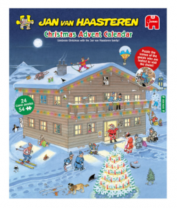 Le calendrier de l’Avent de Jan van Haasteren*, illustrateur hollandais, de chez Jumbo* (à partir de 12 ans – 34,99 euros), propose derrière chaque case un puzzle drôle et inédit de 54 pièces. Chaque dessin compte de nombreux détails et personnages pour un moment de plaisir et de détente au quotidien en attendant Noël !