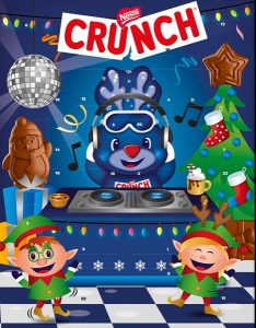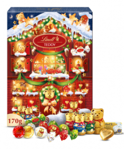 Le calendrier Crunch petit format de Nestlé propose des chocolats au lait fondant parsemé d’éclats croustillants de céréales de riz, décliné en petites figurines festives. Parfait pour patienter jusqu’au grand soir (4,85 euros) !- Le calendrier de l’Avent Teddy Réalité Augmentée (Lindt* – 11,69 euros – 170 g) propose un assortiment de chocolats au lait, de chocolats blanc et au lait, et ce