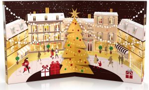 Pour les fêtes de fin d’année, le calendrier de l’Avent Ferrero Collection se réinvente avec un design inédit en forme de livre, invitant à plonger dans l’univers féerique d’un village doré illuminé. Chaque jour, on découvre une des trois recettes emblématiques de Ferrero qui contient 8 Ferrero Rocher, 8 Raffaello, 8 Ferrero Rondnoir (14,99 euros).