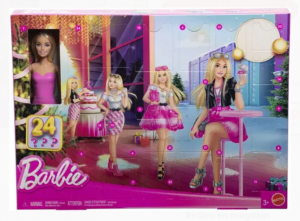 Le calendrier de l’Avent Barbie Fashionistas* (Mattel – à partir de 3 ans – 24,99 euros) permet de découvrir dès le 1er jour une Barbie et les autres jours une surprise à découvrir pour habiller sa poupée. Il contient une poupée Barbie, un chiot, 2 jupes, 2 hauts, 3 paires de chaussures et 23 accessoires.
