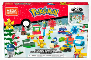 Le calendrier de l’Avent Pokémon Mega Construx* (Mattel – à partir de 6 ans – 29,99 euros) propose avec différentes surprises à assembler sur le thème des fêtes. Il contient notamment 2 figurines Pokémon articulées à construire (Pikachu et Tiplouf). Les 225 briques et pièces de ce coffret sont compatibles avec tous les coffrets de construction Mega Construx et d’autres grandes marques.