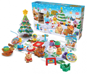 Le calendrier de l’Avent interactif pour attendre Noël avec les Tut Tut Animo de Vtech* (25,99 euros) fera notamment découvrir aux enfants Caramel, le renne du Père Noël (compatible avec les autres univers Tut Tut Animo), un animal « collector » parlant, musical et lumineux mais aussi le décor de jeu avec un circuit et une zone magique qui reconnaît tous les Tut Tut Animo et Tut Tut Bolides. Il contient plusieurs accessoires Tut Tut Animo.