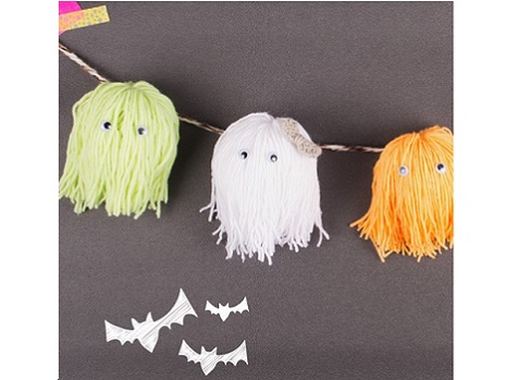 Allez, allez, pour changer de l’ordinaire et faire réaliser une décoration home made à vos bambins, voici une idée toute simple à mettre en oeuvre et qui occupera vos petits Halloween arrive à grand pas : une guirlande d’adorables petits monstres colorés en laine pour accompagner vos belles citrouilles !